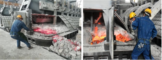 鏡頭三:電解車間"更換陽(yáng)極作業(yè)"比武現(xiàn)場(chǎng),兩車間選派了業(yè)務(wù)能力最強(qiáng)人員組成參賽隊(duì)對(duì)抗比拼。面對(duì)電解槽滾滾熱浪,每一名選手都沉著冷靜、從容應(yīng)對(duì);他們密切配合、張弛有度,按照操作規(guī)程有序進(jìn)行……