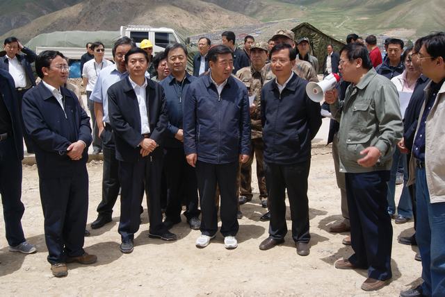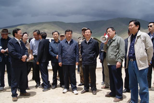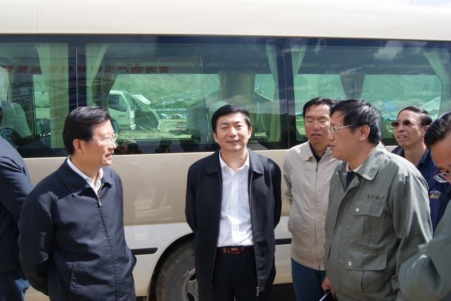 6月19日,中共中央政治局委員、國務(wù)院副總理、國務(wù)院抗震救災(zāi)總指揮部總指揮回良玉率領(lǐng)相關(guān)部委領(lǐng)導(dǎo),在青海省委書記強衛(wèi)、省長駱惠寧、副省長馬順青的陪同下,來到正在晝夜施工建設(shè)的青海物產(chǎn)玉樹建材物流集散中心,視察災(zāi)后重建物資儲備情況和集散中心工程建設(shè)情況。集團總經(jīng)理王玉輝向中央領(lǐng)導(dǎo)和省領(lǐng)導(dǎo)詳細(xì)匯報了建材物流集散中心建設(shè)規(guī)模和鋼材、水泥、木材三大類物資收儲情況。同時表示,青海省物產(chǎn)集團總公司將一如既往,全力以赴支援玉樹災(zāi)后重建,與各路建設(shè)大軍一道,為建設(shè)美好綠色新玉樹貢獻力量。聽完匯報,回良玉副總理非常高興,并做出重要指示,要做好統(tǒng)籌組織建材物資的采購和調(diào)運工作,努力保障供應(yīng),確保質(zhì)量,降低成本?;亓加窀笨偫砑笆☆I(lǐng)導(dǎo)與集團領(lǐng)導(dǎo)、工作人員合影留念。