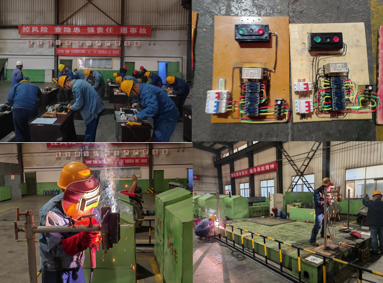 電工競賽現(xiàn)場,參賽選手面對繁瑣的配盤指導(dǎo)圖從容應(yīng)對。剪線、剝線、壓接……,一招一式都是那么的嫻熟輕快,肅靜的環(huán)節(jié)里沖刺著“濃濃的火藥味”;而維修工比賽現(xiàn)場內(nèi)卻異常熱鬧,新老電工、鉗工圍繞在設(shè)定的操作臺前,緊鑼密鼓地剪裁組料、焊接配件、清理焊渣、打磨表面,一套動作行云流水、一氣呵成。