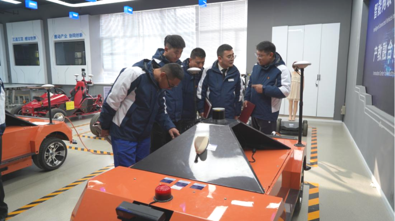 在參觀汽車專業實訓中心時,交通運輸學院汽車系智慧互聯專業老師為支部黨員進行了精彩的現場授課。大家積極請教,互動交流,了解了智慧互聯交流與共享的新型模式,對生活和工作帶來便利和智能化體驗等內容。在場認真聆聽的“物產工匠”石學林對近期將與高校老師組隊參加“西部陸海新通道建設全國引領性勞動和技能競賽”,有了新的啟發。下一步,校企雙方將會對“優服務、壯產業”技能競賽項目進行深入的研究和探討,做到交流“不斷線”,學習“不停步”。
