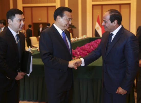李克強總理會見埃及總統(tǒng)塞西,就對方希望"加強反恐合作"提議表示:"我們既要加強反恐合作,也要妥善解決熱點問題,更要高度重視發(fā)展經濟,以鏟除恐怖主義傳播的土壤。"
